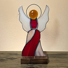 *** Students must have completed a 4-hr beginner level class, or have other stained glass experience. Students should understand the basics of glass cutting, grinding, foiling and soldering. *** There will not be a lesson/practice cutting at the beginning of class. Students will get straight to work making their angel, leaving plenty of time towards the end for some advanced wire work. Students will learn how to use wire to reinforce weak points in stained glass designs. The angel head and halo will be reinforced with wire. Students will complete a 4"x8" stained glass angel. Wooden stand included! Students can choose red or blue glass for their piece and will have the option of applying black patina. All tools and materials provided.